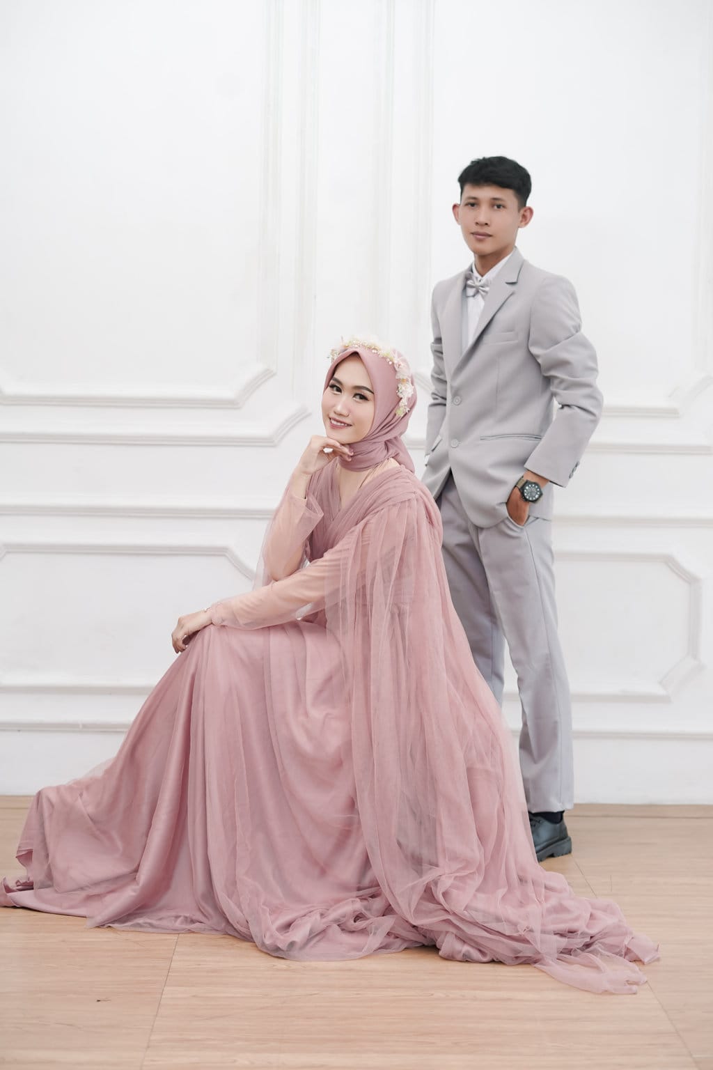 Kami dengan hormat menganjurkan tamu kami untuk mengenakan warna-warna ini untuk hari istimewa kami